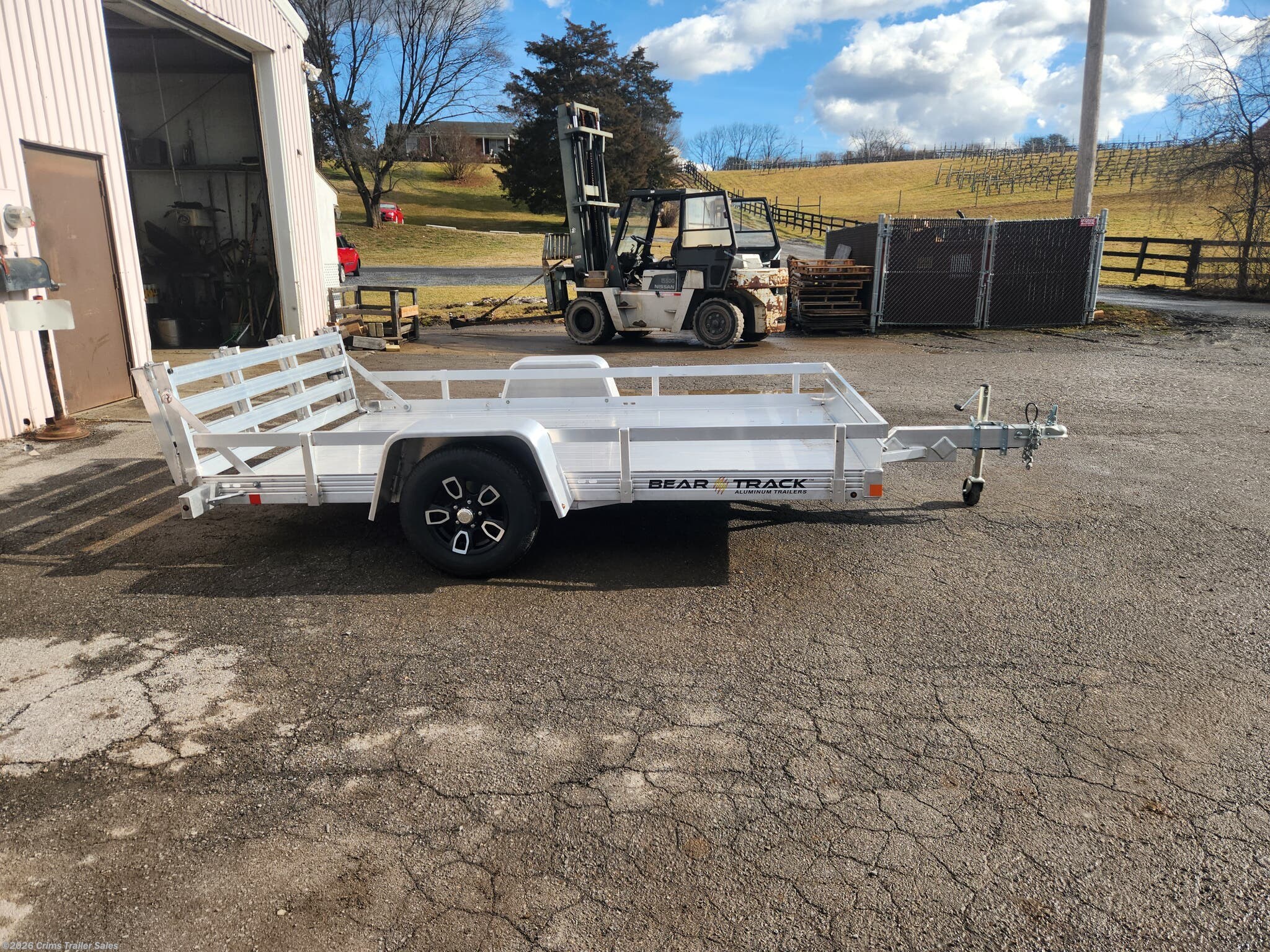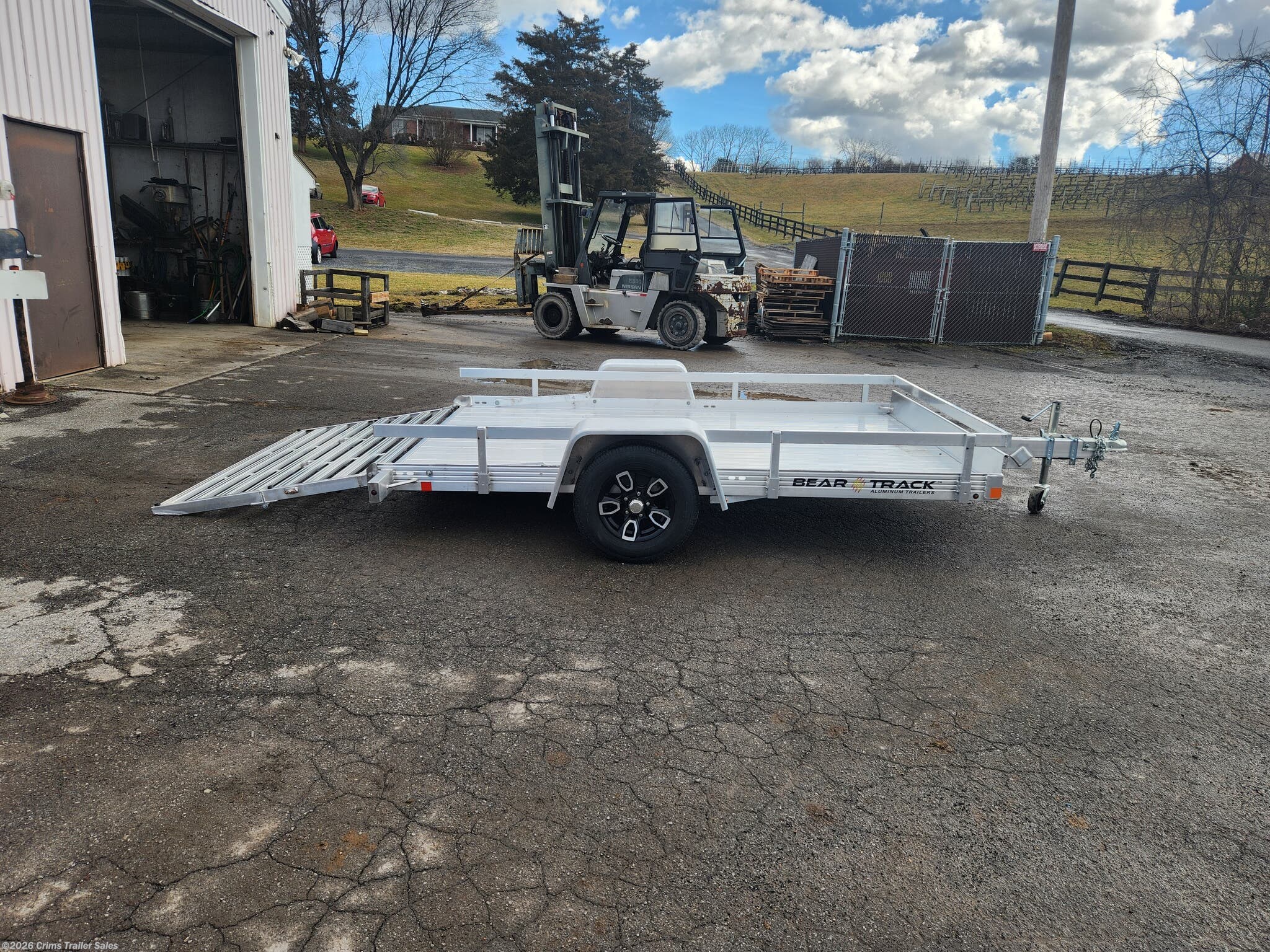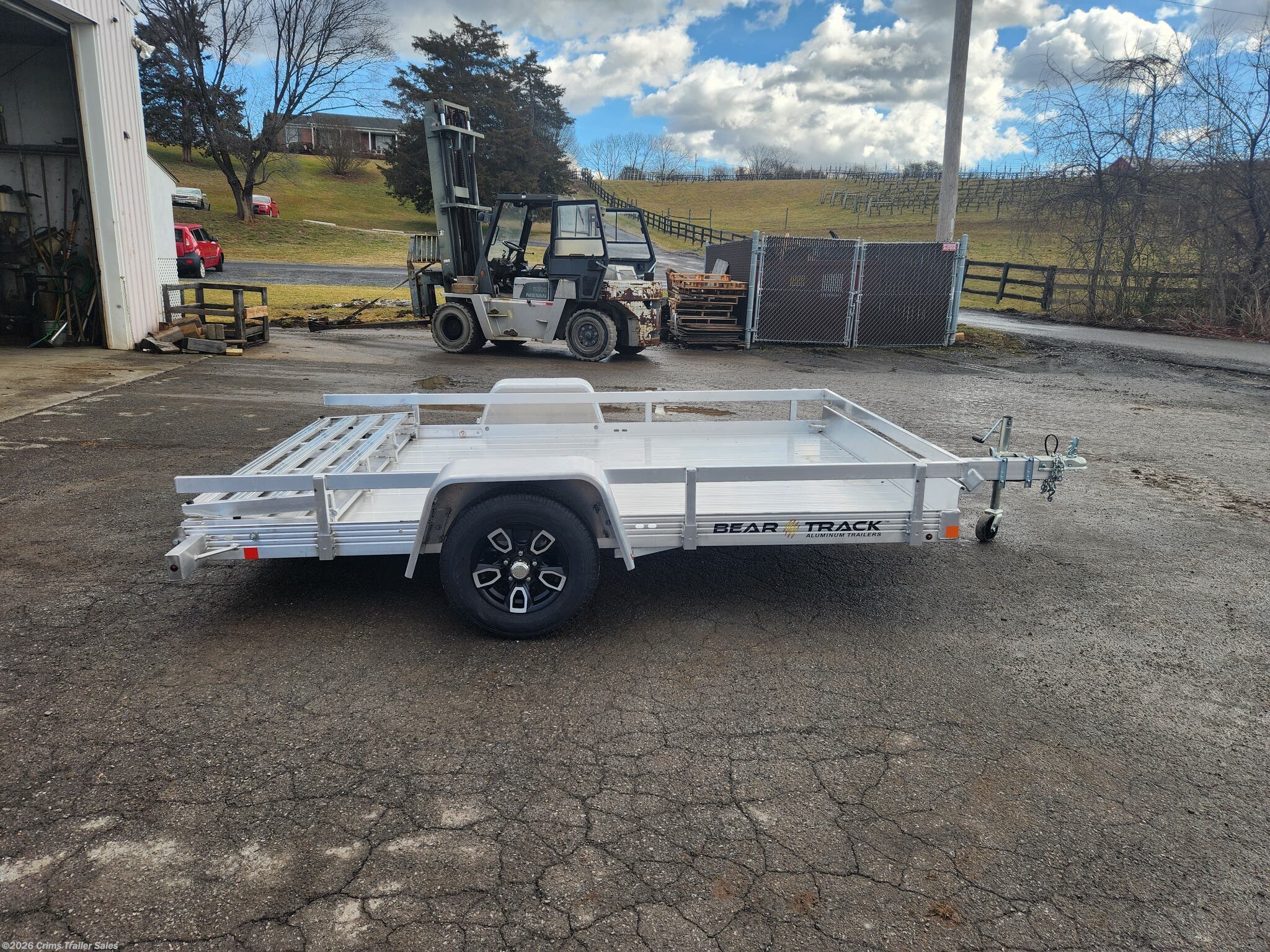6X10 Bear Track aluminum trailer with single rail, torsion axle, 13" aluminum wheels, bifold lay down gate all aluminum deck. Great for all around use!